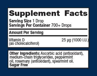 - Vitamin D3 (as cholecalciferol) – 1,000 IU per drop