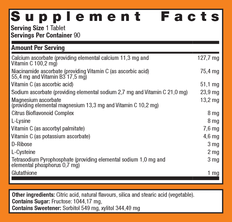 - Vitamin C (as ascorbic acid) – 500 mg